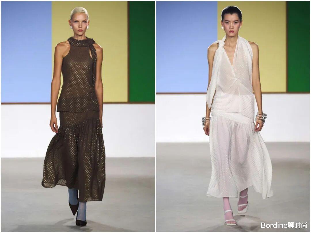 无袖款式的裙装在连衣裙的优雅温婉中,面料增加了不少材质的纹理质感,轻薄的材质也多了几分清透的优雅,还在挂脖、褶皱等设计之上,也有更多细节多了时髦的设计感。