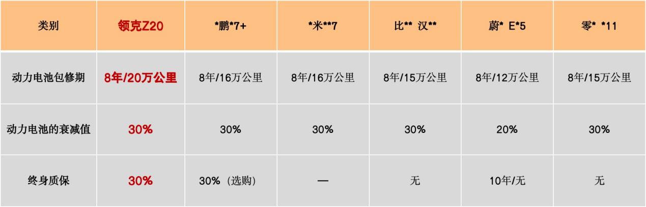 值得一提的是,领克Z20的质保政策,与备受好评的Z10相同,特别是在电池衰减质保上面。对于新能源汽车而言,如果电池使用多年后出现严重损耗,将对续航里程产生不可避免的影响。因此,领克Z20宣布,在终身质保期内,动力电池衰减经官方检测确认衰减已大于30%,且符合终身质保政策,领克将免费维修或更换动力电池组或相关部件。