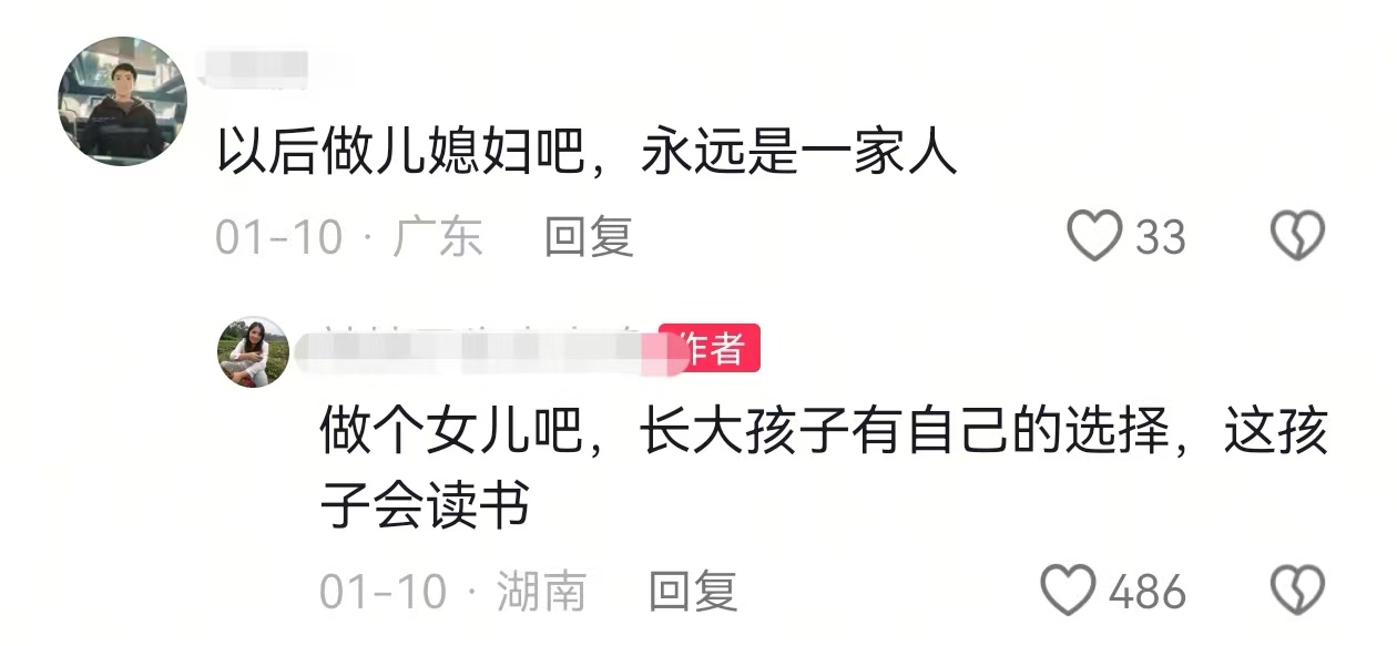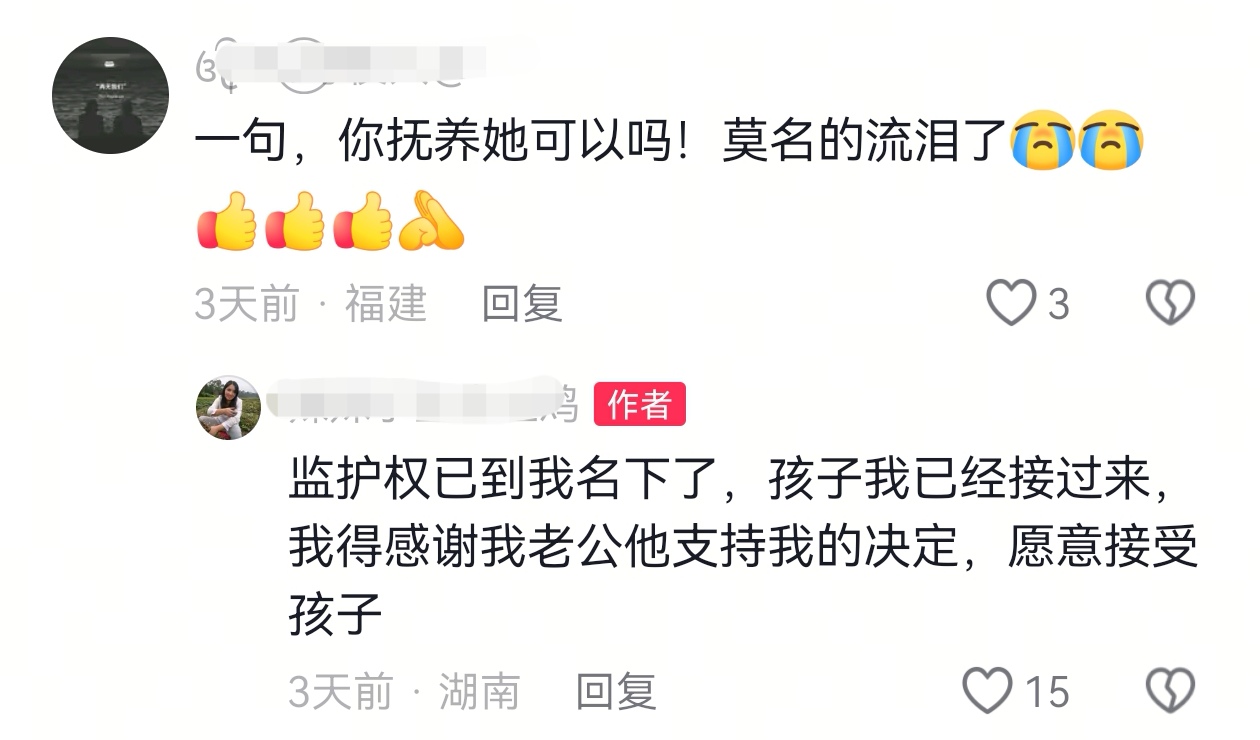 关于孩子来到这个新家庭的身份,闺蜜明确表示,自己有两个儿子,正好将这个孩子当女儿,不会将其视为儿媳,因为孩子长大后都有自己的选择,最终尊重他们自己的选择,而且这个孩子会继续读书。