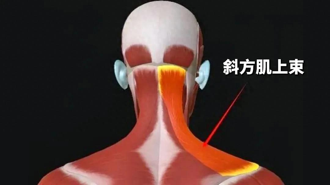 这条至关重要的 “筋”,位于后头枕部至肩胛骨内侧缘。如图所示,大约是斜方肌的上束部分。