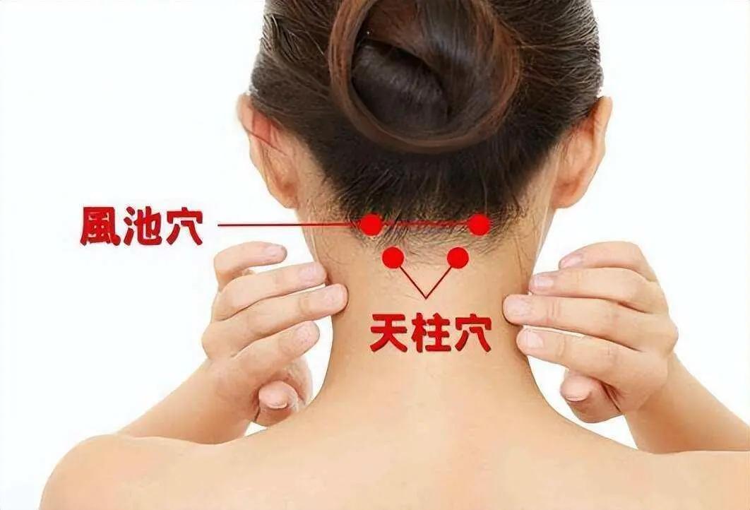 穴位定位:沿大筋外侧向下,后发际边缘的凹陷处就是天柱穴,左右各一。
