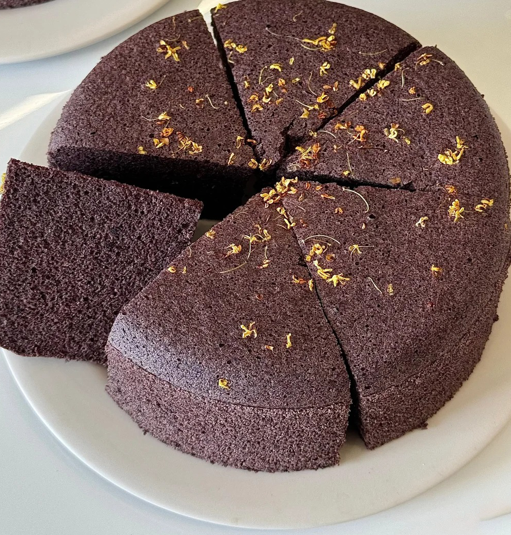 做法:将黑米粉与糯米粉混合,与牛奶、鸡蛋、糖等食材制成面糊,通过打发蛋白使其松软,最后撒上桂花,上锅蒸熟即可。
