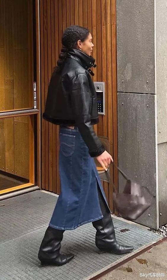 短皮衣、牛仔半裙、长筒靴,3款个性单品的博弈,结果自然就是个性优雅风。毕竟,裙装的女人味,与生俱来,怎么都抹不掉。酷,帅,时尚,将潮流进行到底。