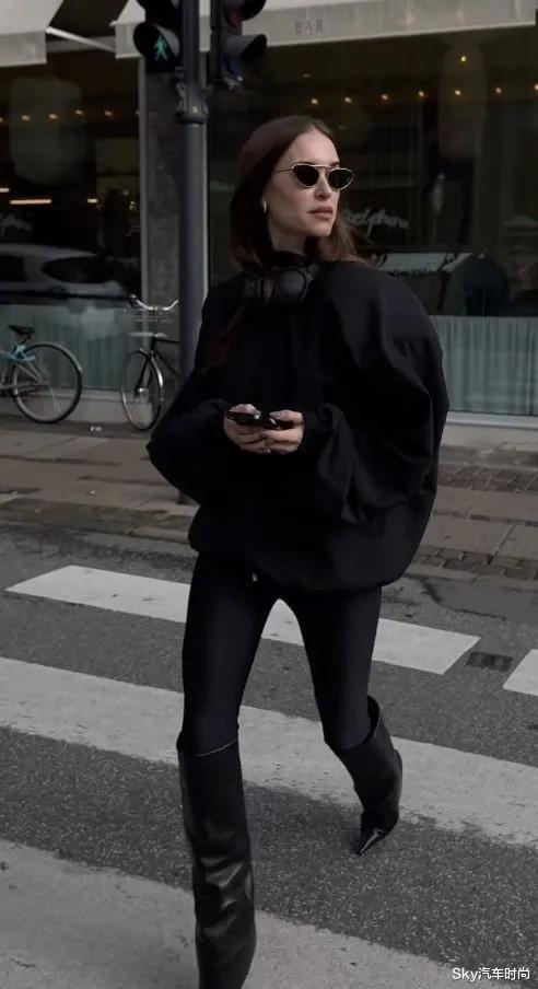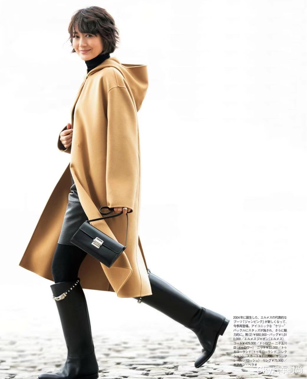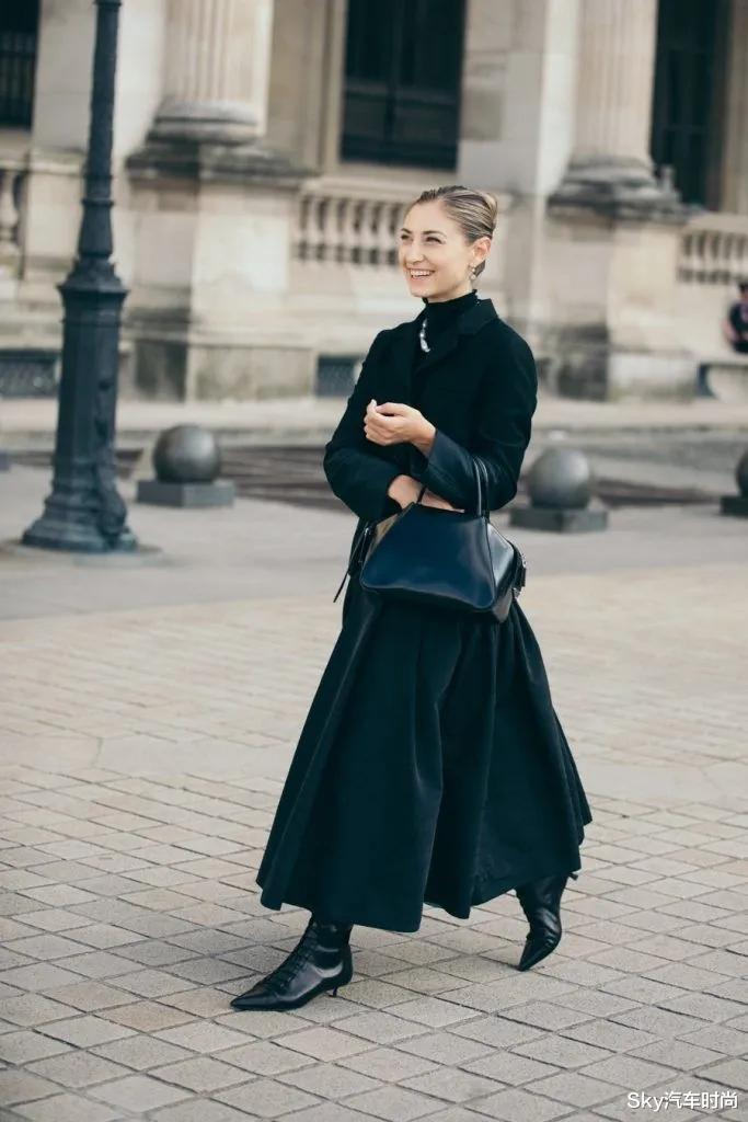 内搭与下装,可温柔、可帅气,怎么配都不影响大衣+长靴的时尚力。成熟女人的冬天一身黑,性感、酷感、窈窕、轻盈,从不觉无趣与单一。很容易营造干练的大气风,强化气场,描画时尚。