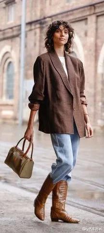 牛仔蓝,棕色靴,一蓝一棕,永远有唱不完的时尚大戏,为这个沉闷的秋冬季,涂抹几分亮点。配色经典、风格经典,强强联手之下,岂能随便过气?任何人,都可以借助这对组合的时髦,为冬日时尚加一把火。