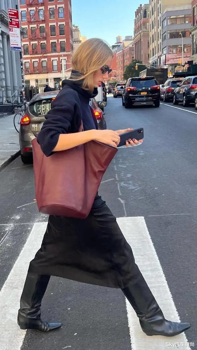 女人味长裙+中性长靴,中性长裙+精致长靴......一正一反,一反一正,反正不要顺着来,逆着来搭配,就是飒美优雅风的穿搭精髓。