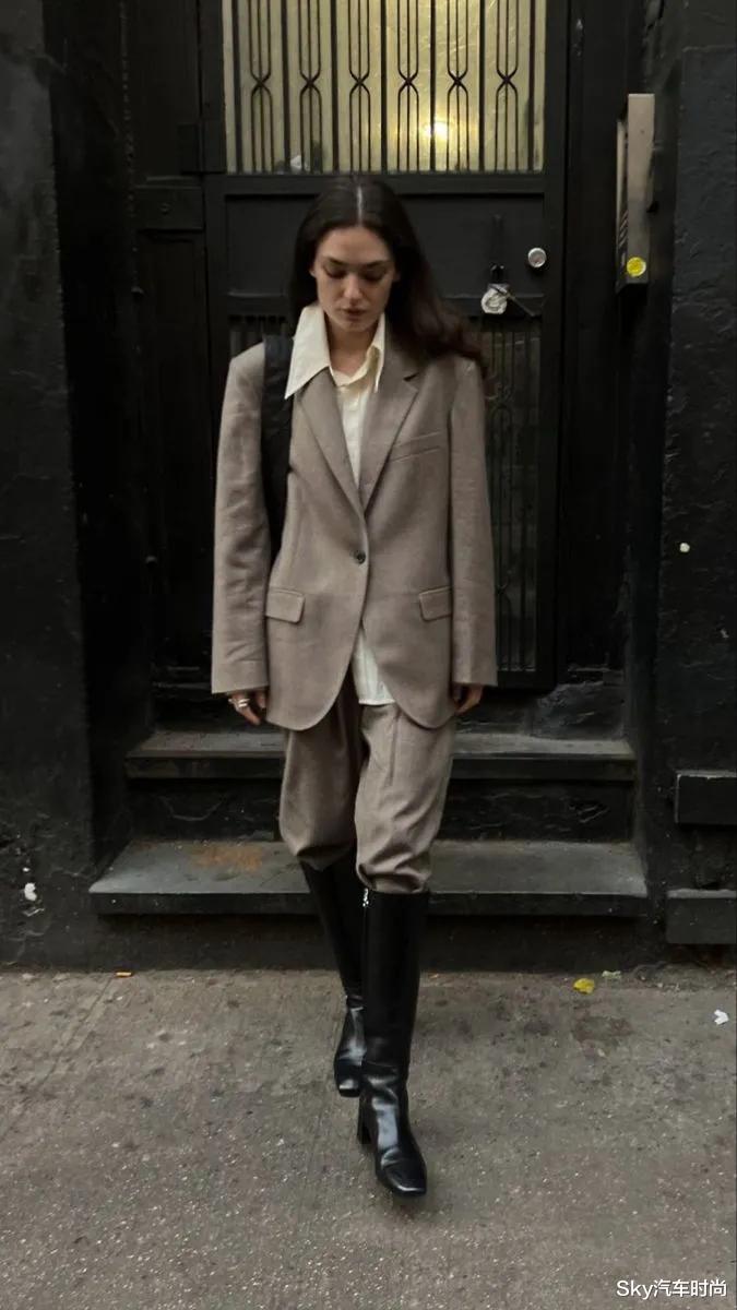 西装、白衬衫、西裤,原本最严肃的职场装,全因一双长筒靴而燎原为街头时尚。少了一本正经,多了随性,更多了时髦况味。色调上,可顺,可逆,可经典,可鲜明,想怎么穿、就怎么穿,底气十足的时尚,不需要左右迎合。