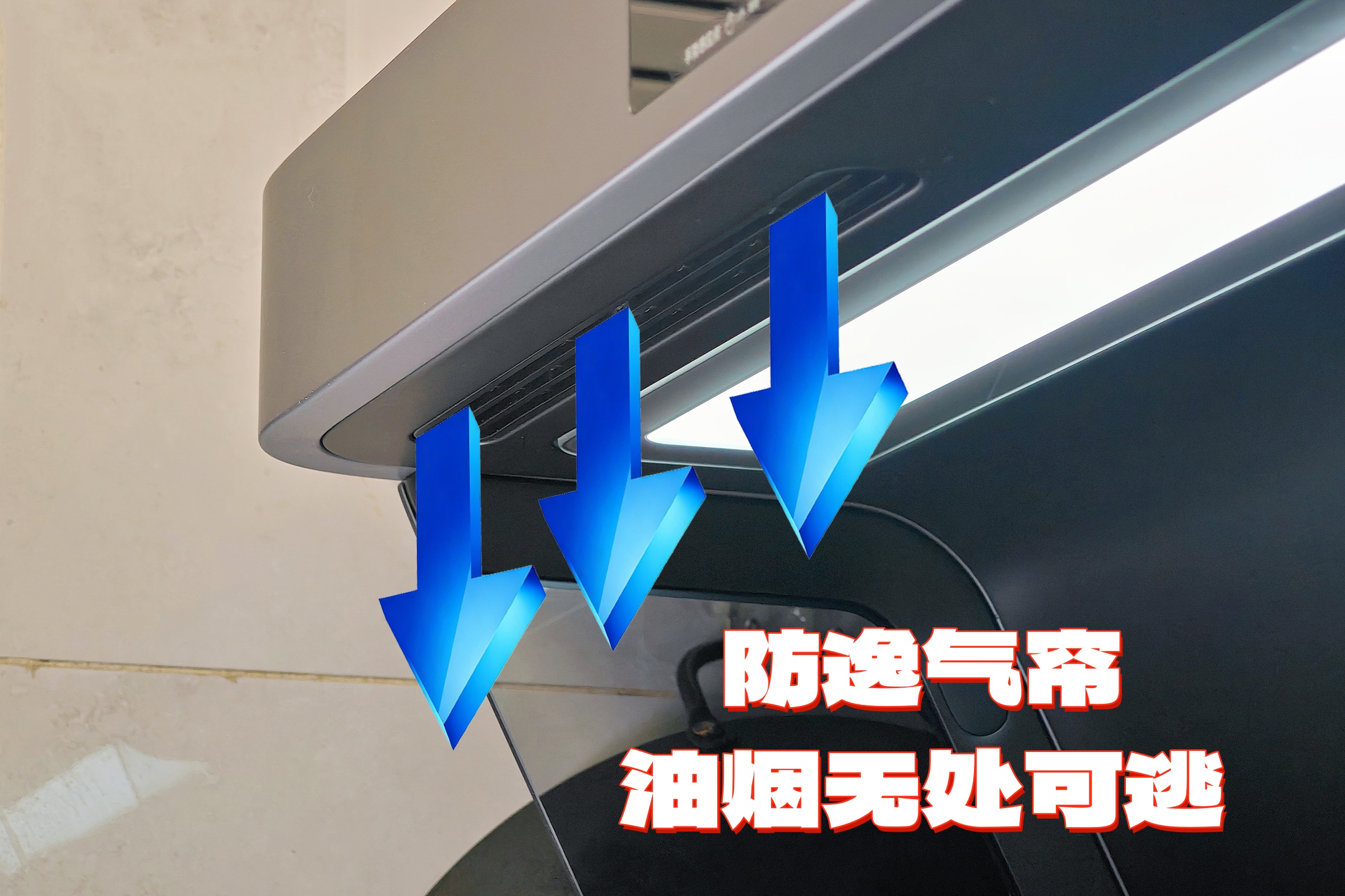 ▲除了高效捕集的气旋系统之外,米家净烟机Pro的 两侧气旋侧翼以及 顶部防逸阻隔气帘能够形成屏障,哪怕遇到气流扰动,烟雾也跑不出去,最后乖乖回到吸风口。