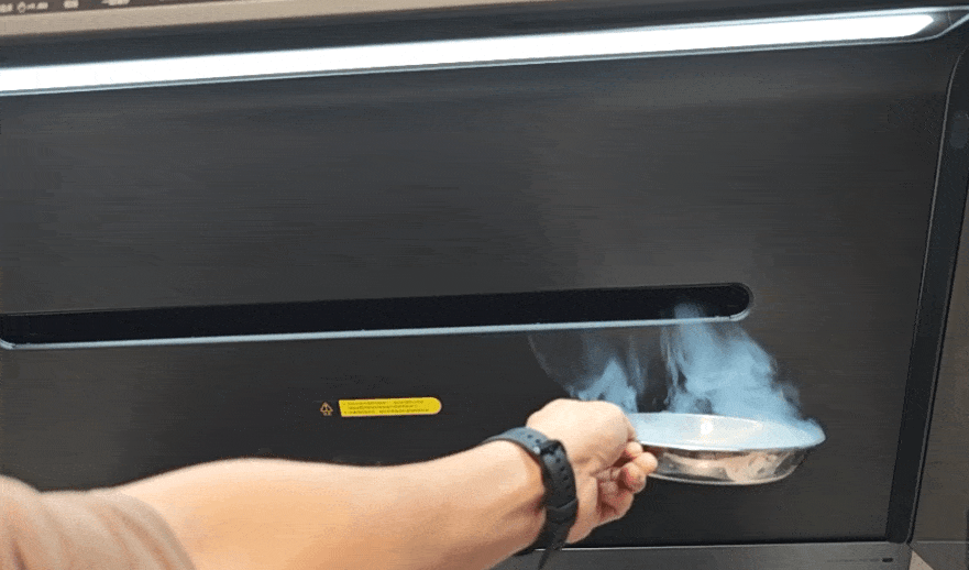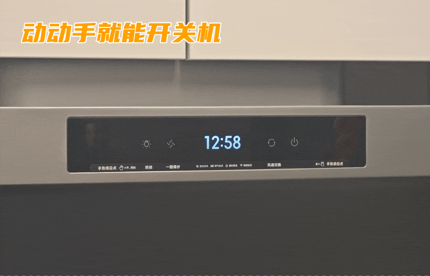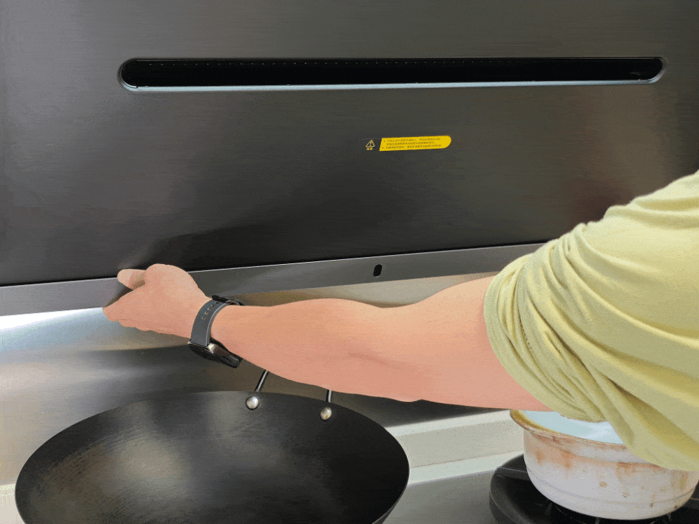 ▲米家净烟机Pro摒弃了容易藏污纳垢的传统按钮,转而采用了 高清彩色大屏显示+触控 的方案,同时还支持手势操控。向右挥手可以开机、切换档位,向左挥手则是关机。不仅手势简单,即使是老人家也容易记住,而且在手脏的时候,不弄脏面板就能实现操控,这样日常清洁又省去一个需要擦拭的地方!好耶!