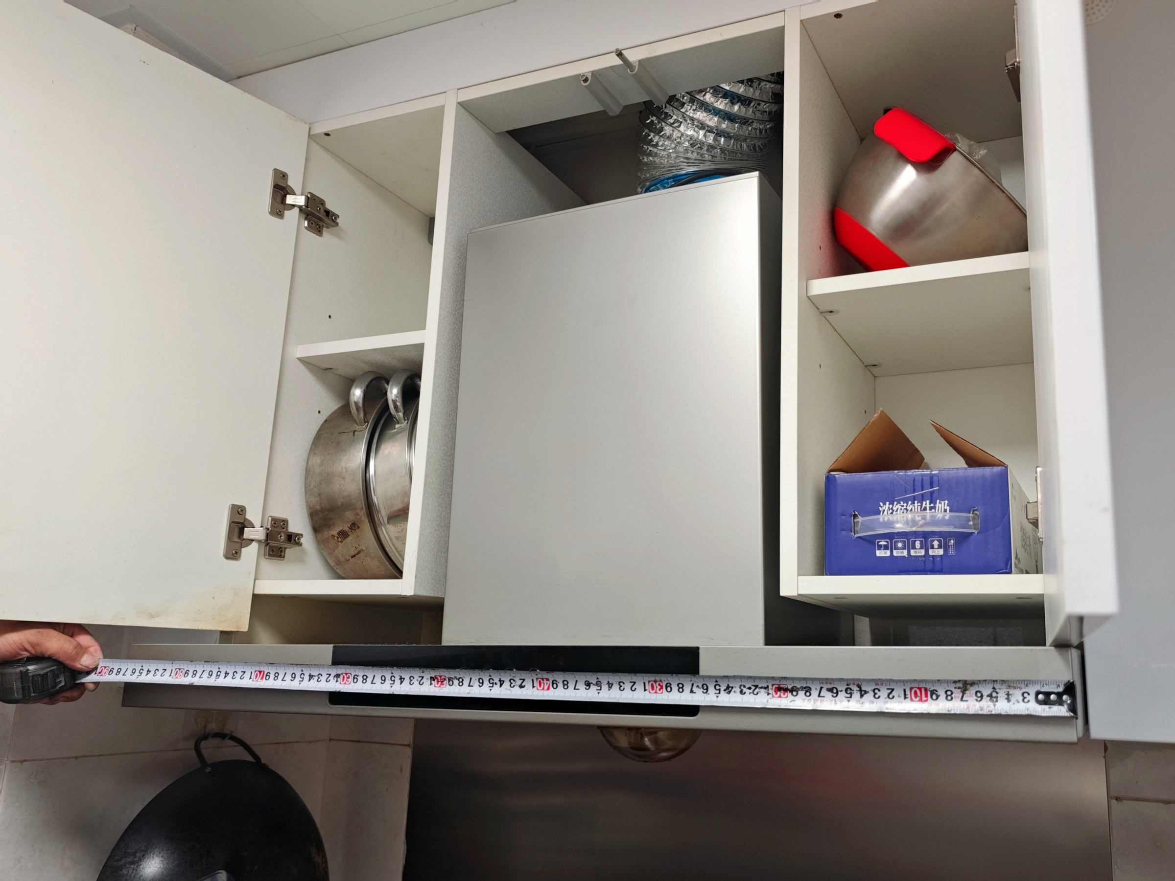 ▲报装之后,就有专业安装师傅联系,上门后把原有的橱柜尺寸、烟机离台面高度、深度等进行专业测量,全面评估安装方案。我这边烟机上的橱柜正好少了一块板的宽度,但师傅说他能改,收费还不贵,于是我就直接交给师傅来操作。