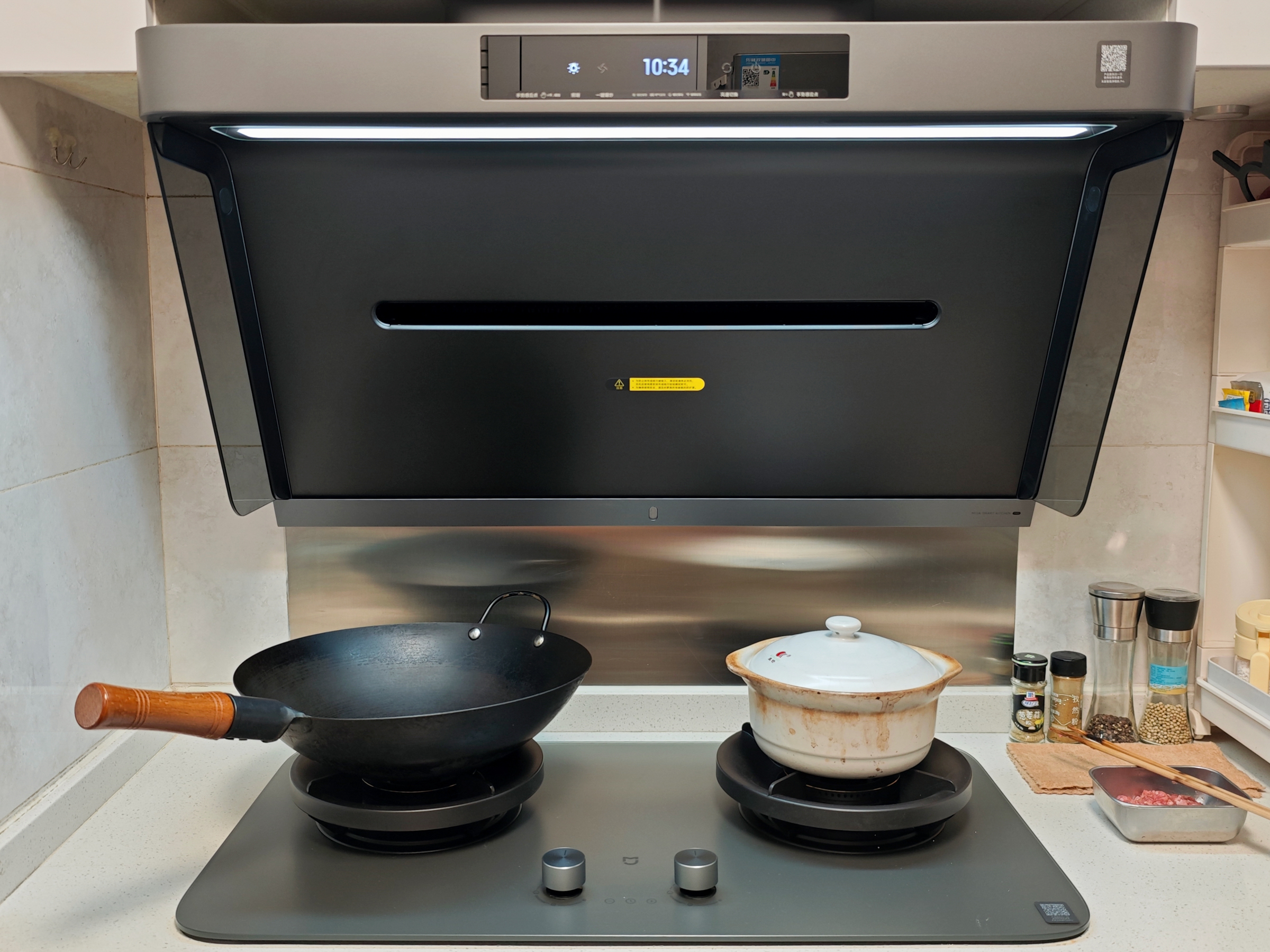 ▲终于换上了心心念念的 米家净烟机Pro ,一下子就被它的高颜值给硬控了: 星辰银配色 搭配 高清彩屏 ,科技感拉满,也难怪丈母娘猛夸,说:“这台叫净烟机是吧?看起来真高档!”而 圆弧边角设计 让我再也不用担心头上碰个大包!