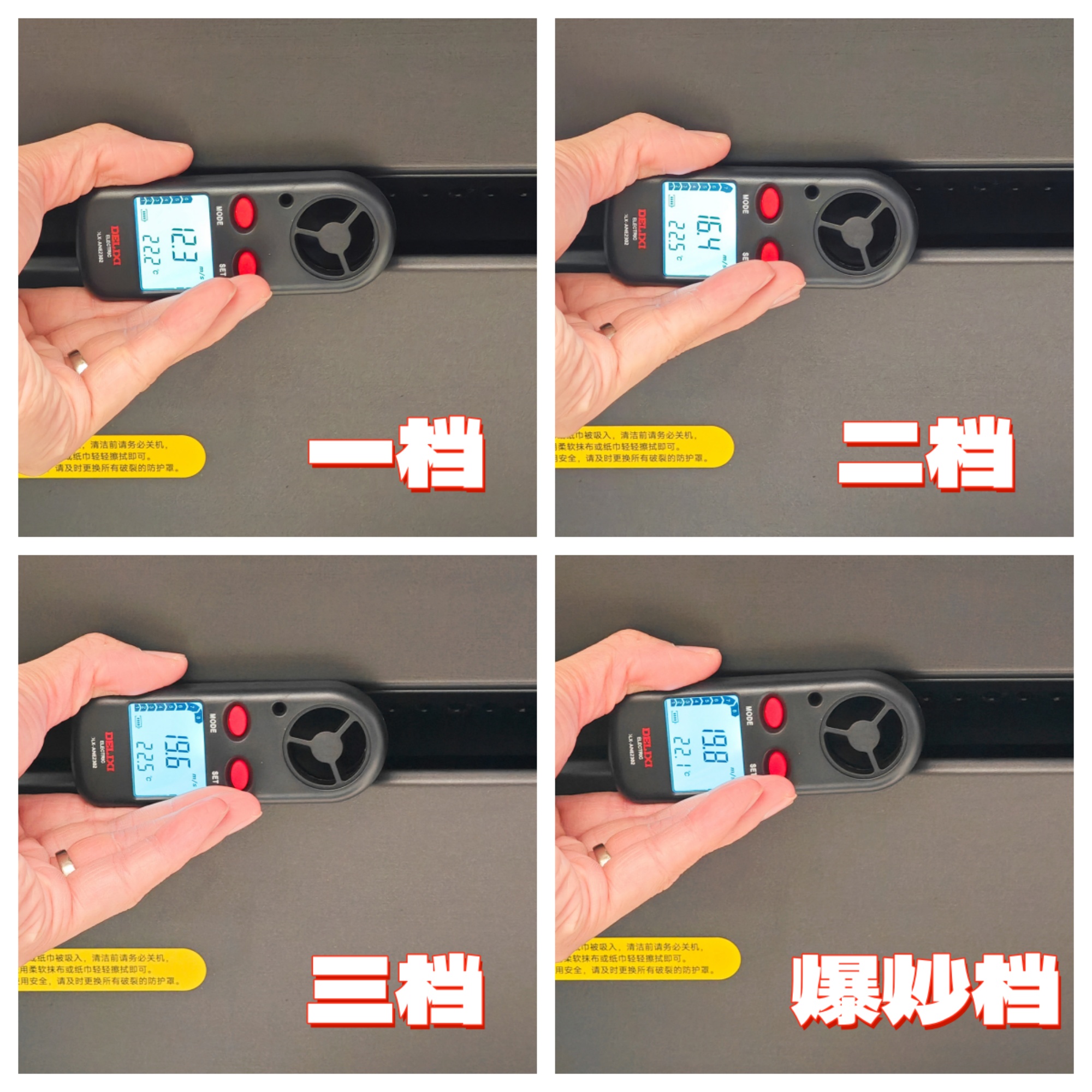 ▲米家净烟机Pro搭载了 高转速BLDC直流电机 ,性能贼强。安装完厂测时师傅让我看了,转速最高可达 3200rpm !大功率电机配合 创新一字型增压吸风口 ,风速极快,我使用专业风速计分别测定净烟机不同档位的风速,可以看到风速最高将近20m/s!官方数据的14m/s还是太保守了哈哈!