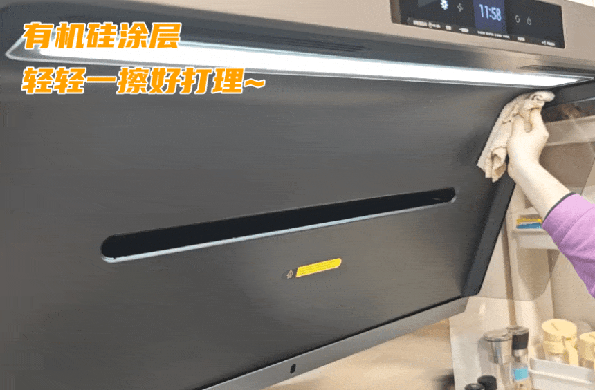 ▲机身本来就是金属材质,再配合 加强版有机硅涂层 ,抗油污能力进一步提升,日常用抹布擦一擦就很干净了,爽!