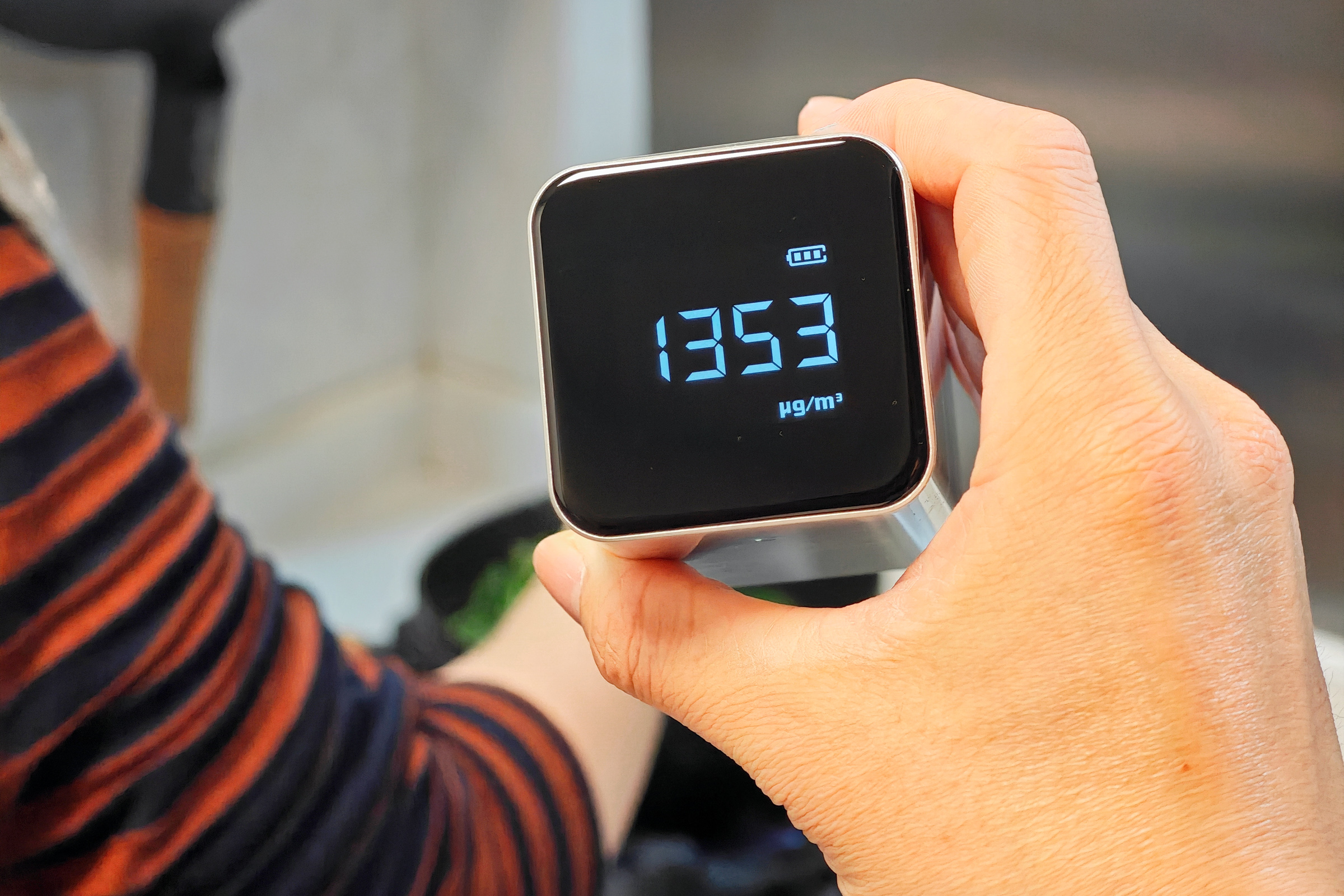 ▲长此以往,老人家最近说胸闷气短,我赶紧网上买了个PM2.5测试仪测一测。 不测不知道,一测吓一跳,普普通通炒个青菜,掌勺人的位置PM2.5读数竟上了4位数!