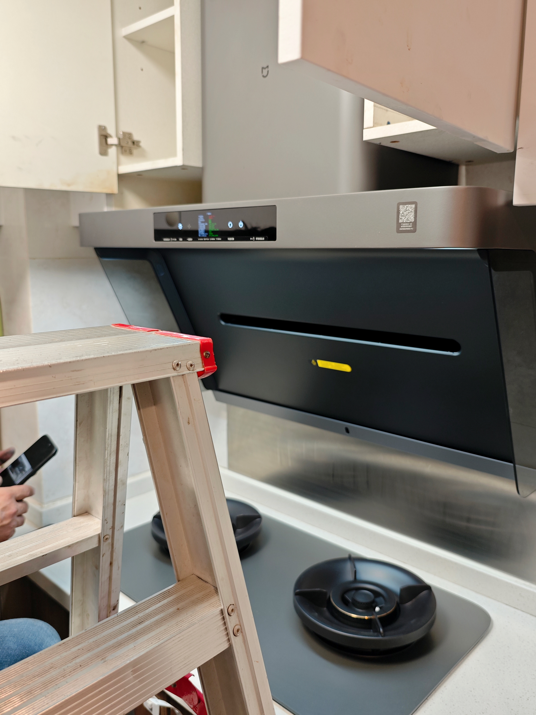 ▲前前后后经过3个小时鏖战,改柜、开孔(炉灶孔小了点)、安装、清理,安装师傅都非常尽心尽力。安装好之后,他还开启了出厂模式,进行了 严密厂测,再验收,一丝不苟。服务既专业又贴心,点赞!