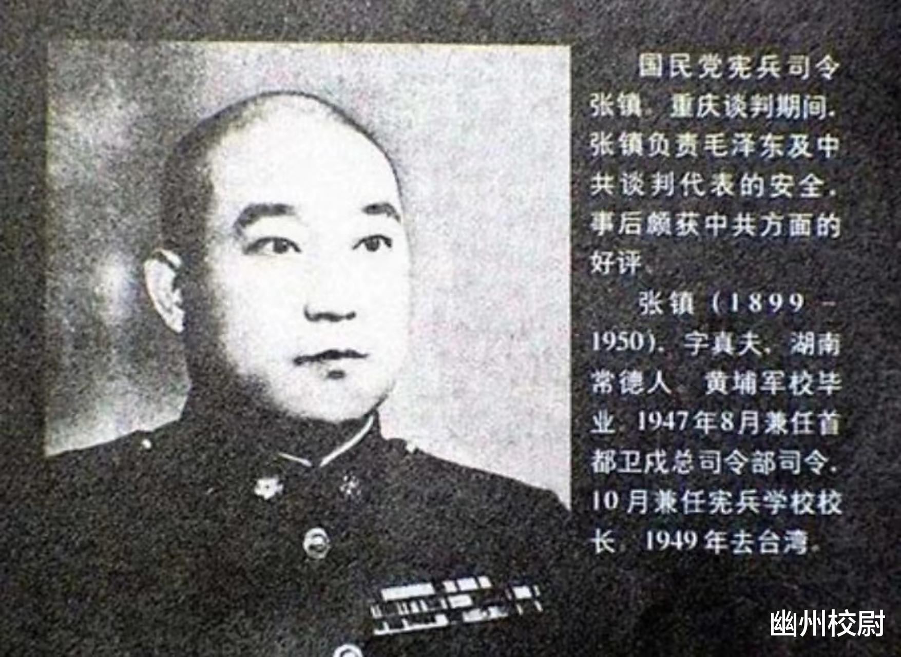 在潘佑强旁边,双手放在膝盖上,正襟危坐的将领是张镇。他是蒋介石的心腹之一,曾在老蒋身边担任副官,后被派往宪兵部队,担任宪兵司令。