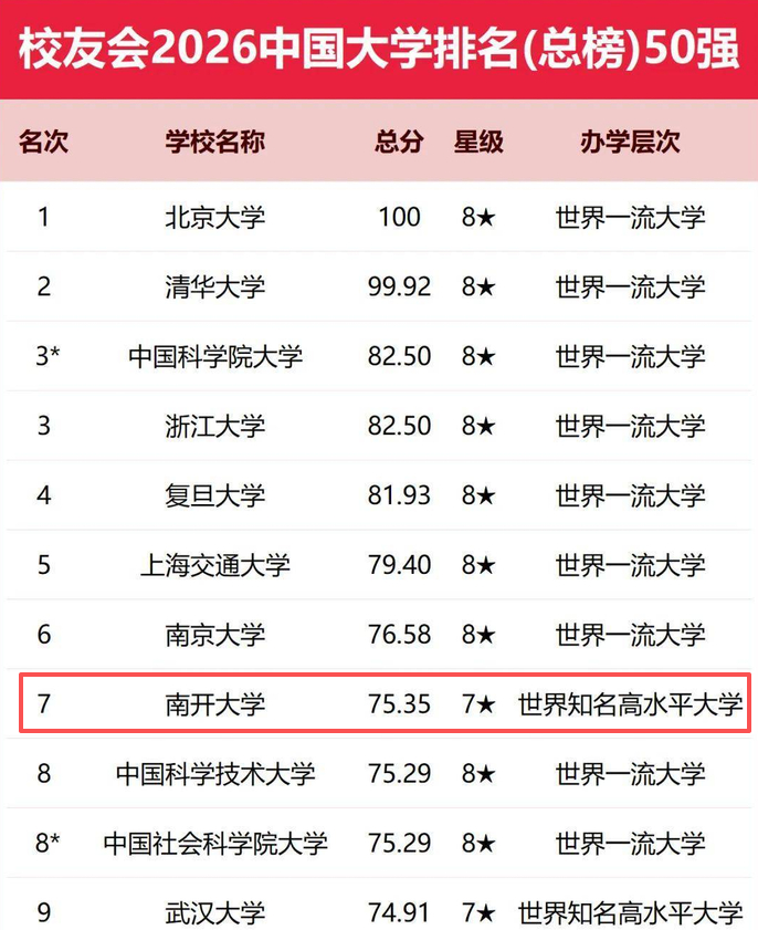 2026年初,一份新鲜出炉的大学排名成了许多学生和家长热议的话题。在艾瑞深校友会最新发布的榜单上,南开大学的表现堪称亮眼——它一举跃升至全国第7位,甚至超越了一些传统印象中的顶尖名校。在各类高校排名愈发看重综合规模的当下,这匹“老牌黑马”的逆袭难免让人好奇:排名跃升的背后逻辑是什么?这份亮眼名次,又是否能真实反映南开的就业竞争力?其实答案,藏在评价体系的变革与学校坚守的特色路径里。