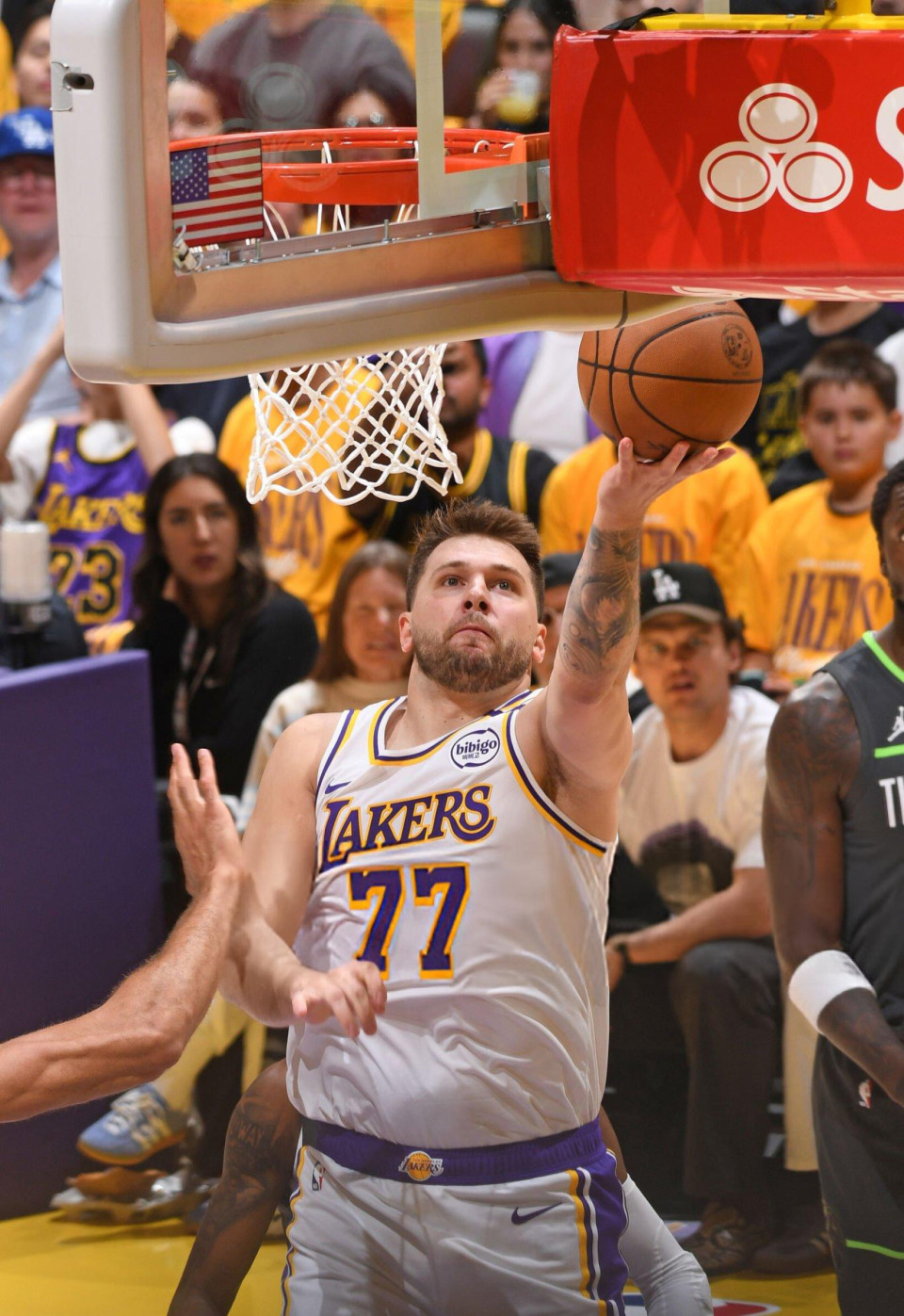 进入次节比赛之后,东契奇减少出手仅有一次三分投篮偏出,他两次造成犯规四罚全中,单节拿到4分。不过湖人队这节比赛被森林狼队打出38-20,半场结束落后11分。湖人队在第三节再次被森林狼队打崩,东契奇连续得分帮助球队缩小分差,在这节比赛结束前,东契奇命中压哨三分,帮助湖人队缩小分差到16分。