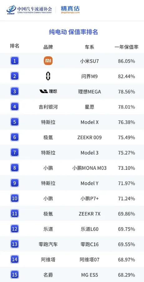2025纯电保值率封神榜!前三甲出炉,榜首竟是它