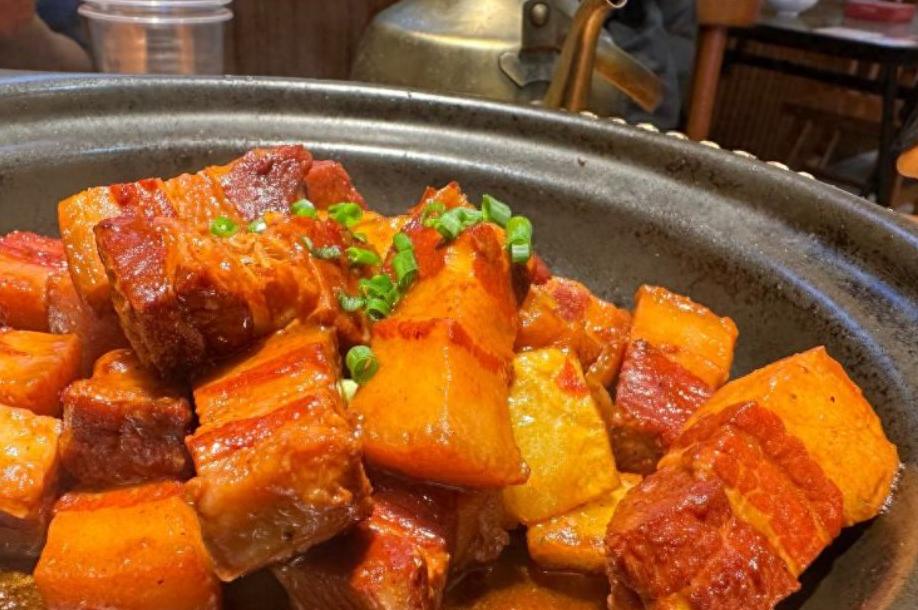 还有那毛氏红烧肉,一拿上桌,油亮红润的颜色便让人食指大动。