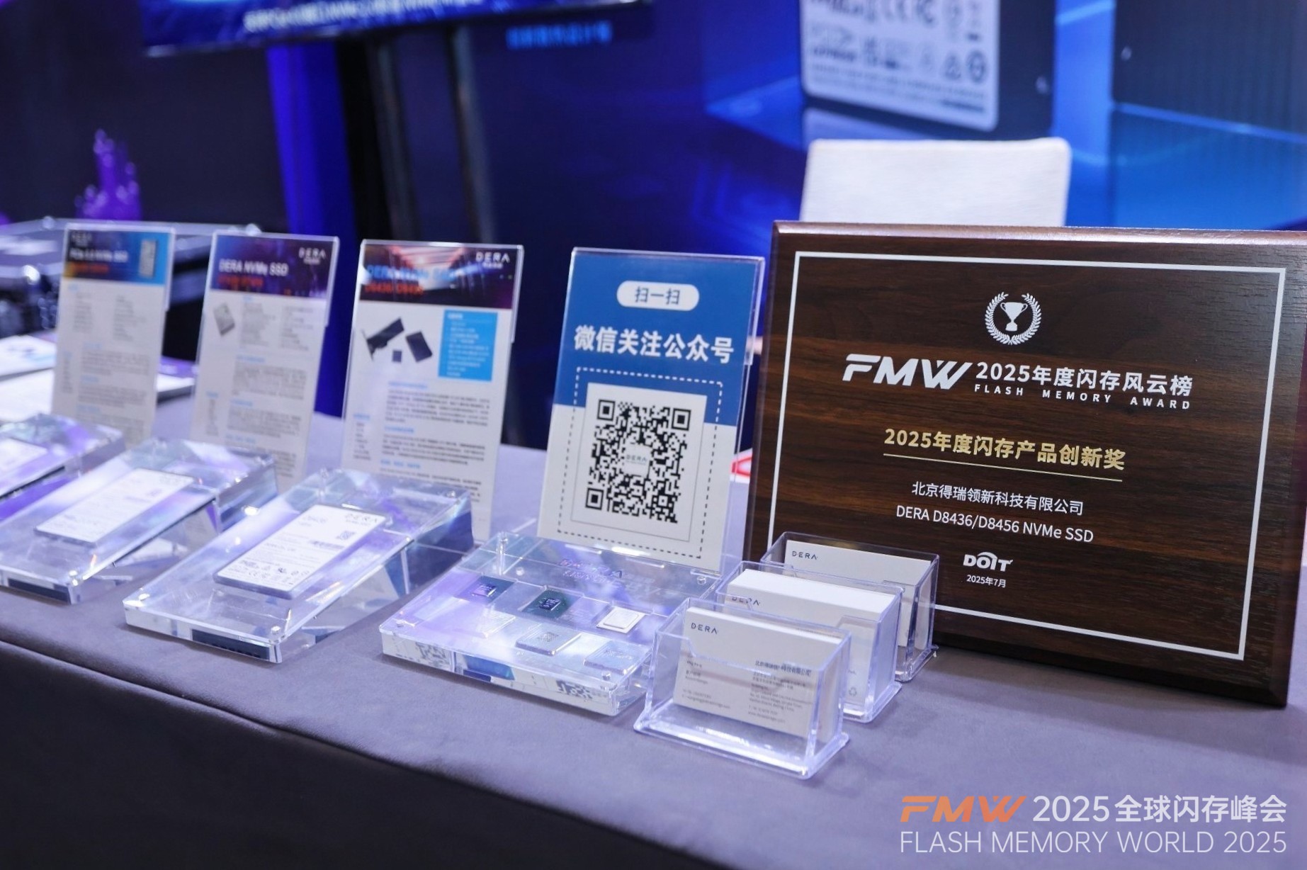 近期,由DOIT传媒主办的2025 FMW全球闪存峰会在南京圆满落幕。本次峰会以 “存力觉醒AI未来” 为主题,汇聚了全球存储领域精英,共同探讨闪存技术如何在人工智能浪潮中赋能数字化转型。国内领先的企业级SSD解决方案创新者得瑞领新(DERA)携重磅产品 —— PCIe 5.0企业级SSD D8000系列惊艳亮相,并获评“2025年度闪存产品创新奖” ,充分彰显了其在存储核心技术领域的突破性实力。