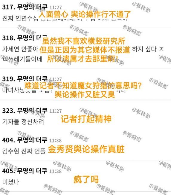 这些替金秀贤叫屈的韩媒,也遭到韩国网友痛批,金赛纶被逼得没命了,而金秀贤被审判就不行了,痛批韩媒是金秀贤的走狗。还有网友指出,正是因为没有韩国媒体愿意支持,担心有风险而不敢报道,导致金赛纶的家属只能寻求八卦媒体“横竖研究社”,他们是唯一愿意公开这些信息的,这也反映出金秀贤的公司掌控了多少韩国的舆论资源。