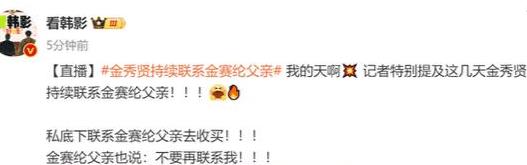 据了解,事件发生后,金秀贤不断与金赛纶的父亲保持联系,希望能私下谈判以解决问题,最终迫使金赛纶的父亲公开要求停止联系。
