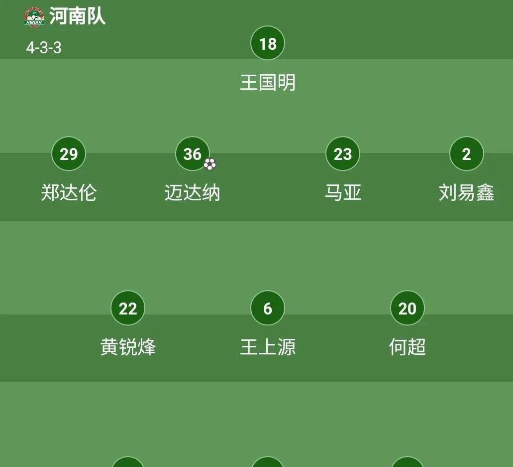 河南队也摆出了4-3-3的阵型,刚从世预赛回来的王上源也首发上场了!