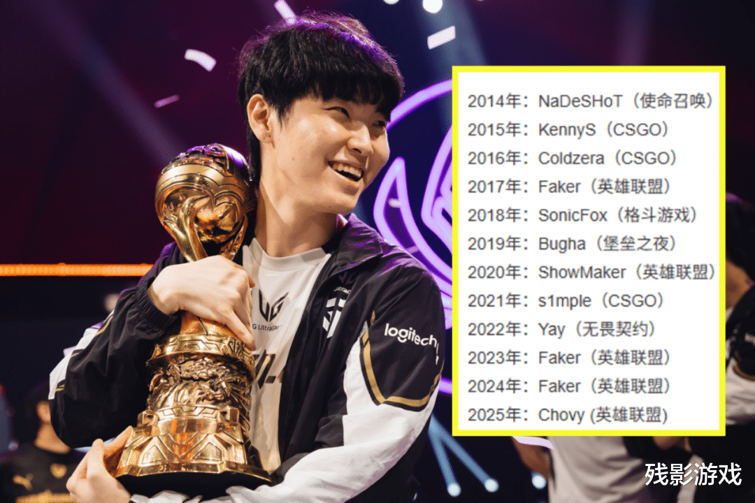 在S15赛季中,T1夺得了全球总决赛冠军,算上这一冠,T1也是成为了首支六冠王的队伍,而Faker也是拿到了六冠中单的荣誉,将自己LOL第一人的宝座打造的更加牢固。如果以荣誉来判定成败的话,Faker必然是S15赛季最成功的一人,然而本次TGA年度最佳电竞选手却不是他,而是Chovy。从2014开始,TGA就有评选历届最佳电竞选手了,此次Chovy入选,已经是LOL第五次被选中了。