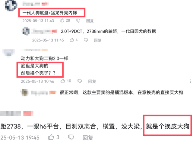 这么来看,哈弗猛龙燃油版的档次感似乎一下子就掉了下来,毕竟这款车预计售价可能会超过13万元,而哈弗大狗目前优惠后裸车价仅需9万出头,如果真像网友所说的“换壳”,那买哈弗猛龙燃油版的用户岂不是“大冤种”?