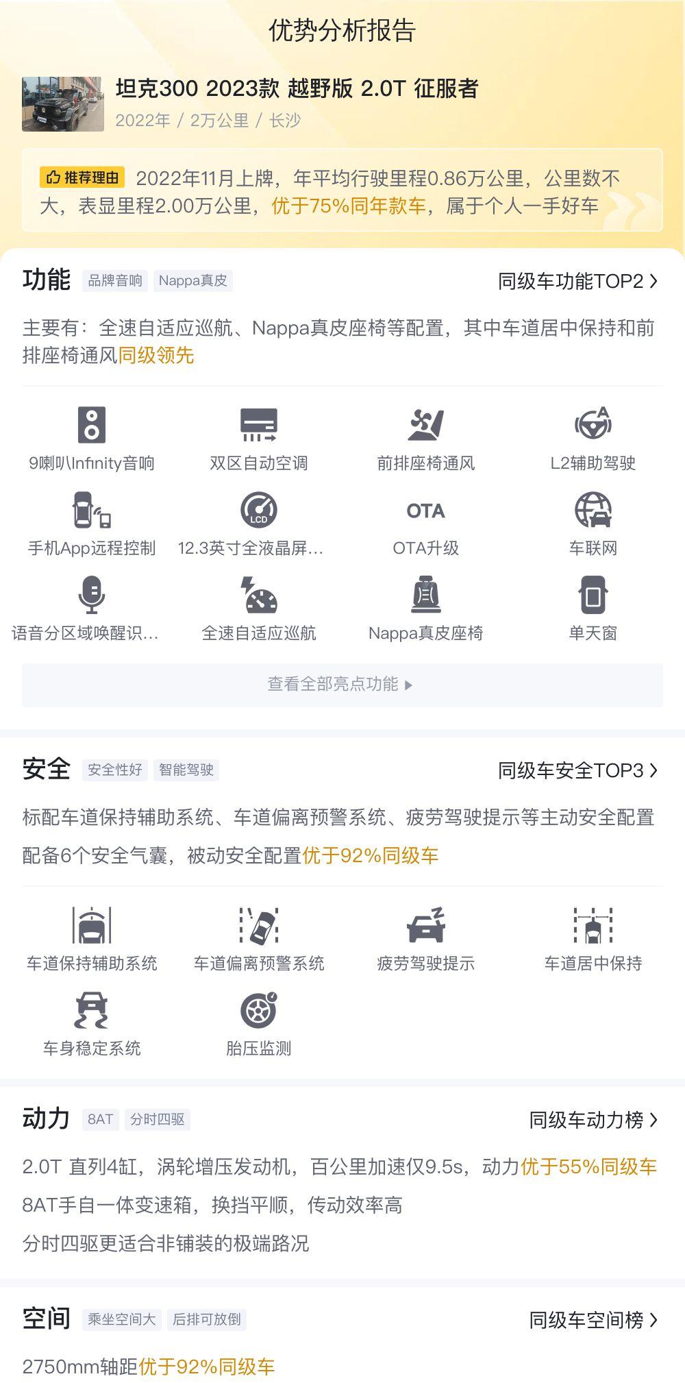 在谈及用车成本时,坦克300同样展现出了其实际的经济性。根据大数据分析,这款车型的年均用车成本约为13644元,这个数字中已经涵盖了油价、保险及保养等多项费用。这对于那些每年行驶距离在2万公里上下的家庭来说,是一个相对合理的数字。值得一提的是,保险费用通常在5102元左右,而驾驶习惯等因素则可能对最终费用产生一定影响,但这对选择理性消费的人群来说并不算是个负担。