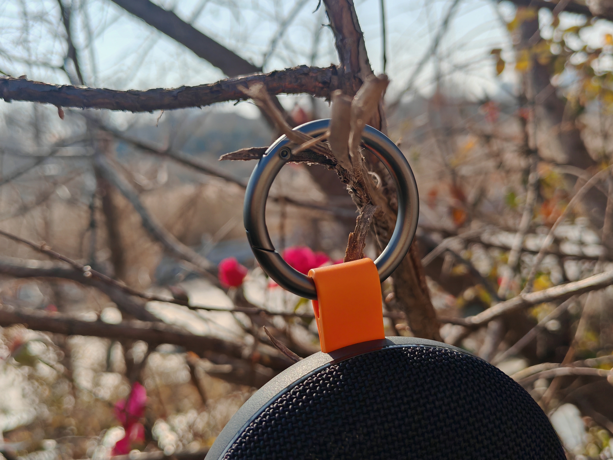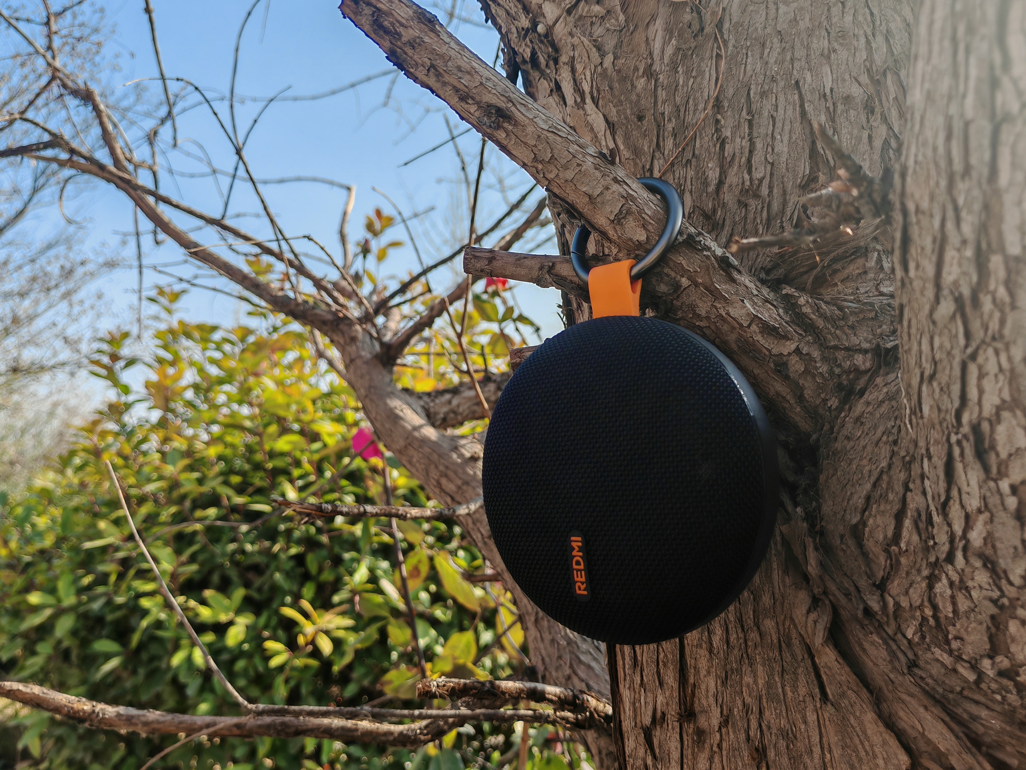 REDMI蓝牙音箱 2的便携性上做得非常出色。它配有一个可拆卸的金属挂扣。我们可以随手将它挂在车把上、腰间、背包上,无论是骑行、健走、爬山、完全不必担心滑落。
