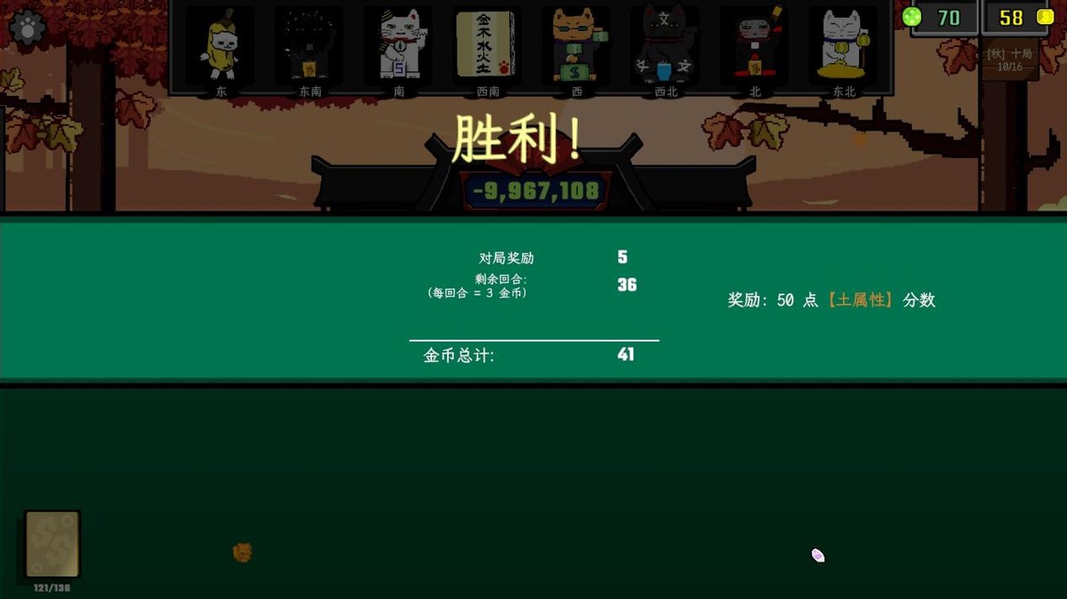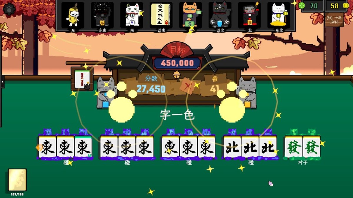 《风水喵将》在麻将框架引入了肉鸽式的随机机制,这看似并无特殊,实则在游戏中大大减化麻将的侧重,强调牌组构筑和道具宝物合理运用放置,让不懂麻将的玩家,也可以快速上手。天命牌、宝物效果与关卡奖励不断叠加,每一局都充满惊喜,轻而易举就让玩家“沦陷”。