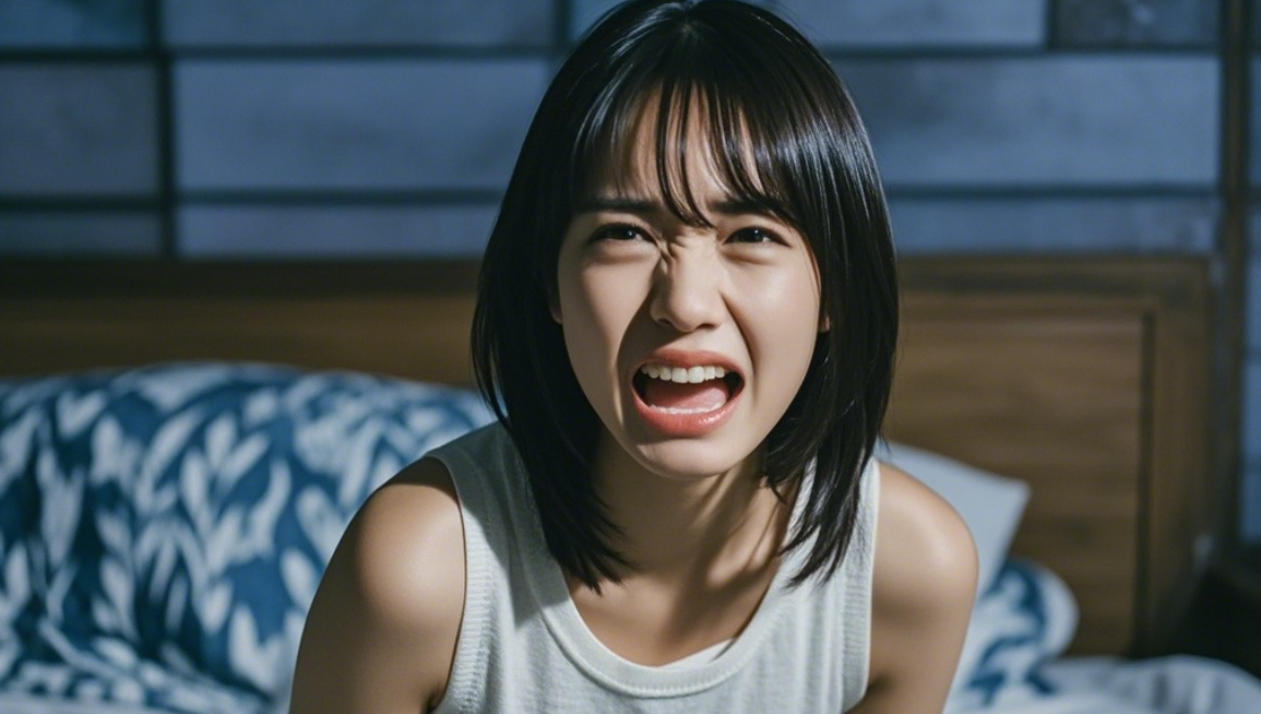 女明星紧紧的夹着双腿,脸上露出了痛苦的表情。
