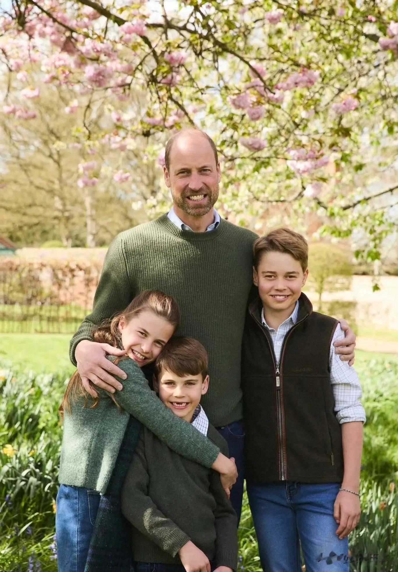 2025年父亲节,肯辛顿宫发布威廉王子和三个孩子的合影,都是同一个系列。