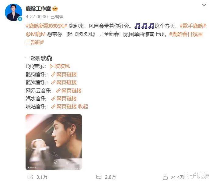 原来是鹿晗上新歌曲,工作室配合做宣传。