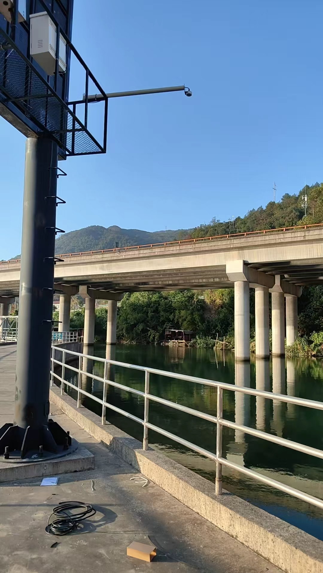 设备需与水库水面保持垂直,探头到水面距离控制在 0-40m 量程内,同时避开树枝、漂浮垃圾等障碍物,防止干扰雷达波反射;