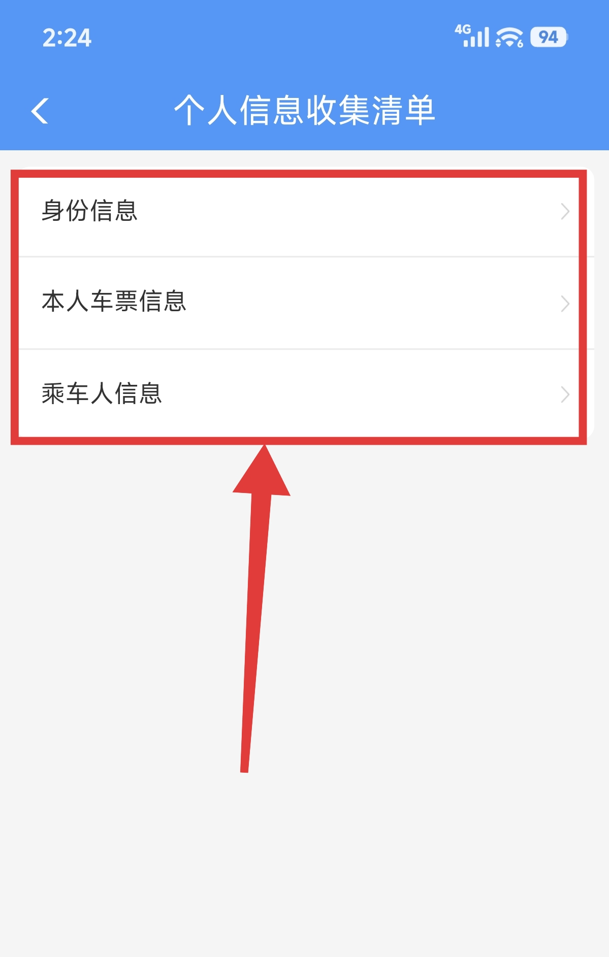 2.进入到设置页面后,点击【个人信息收集清单】。