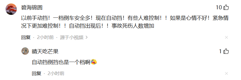 以前手动挡!一档倒车安全多!现在自动挡!有些人难控制!!如果是心情不好!紧急情况下更加难控制!!自动挡出现后!!事故死伤人数增加