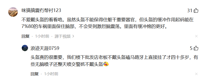 不爱戴头盔的看看咯。虽然头盔不能保得住躯干重要器官,但头盔的缓冲作用起码能在7%80的车祸里面保住脑部,不会受到激烈脑震荡。里面有缓冲棉的更好。