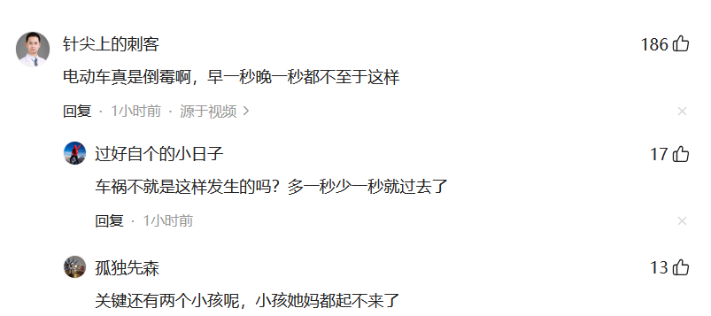 看看网友怎么说!电动车真是倒霉啊,早一秒晚一秒都不至于这样