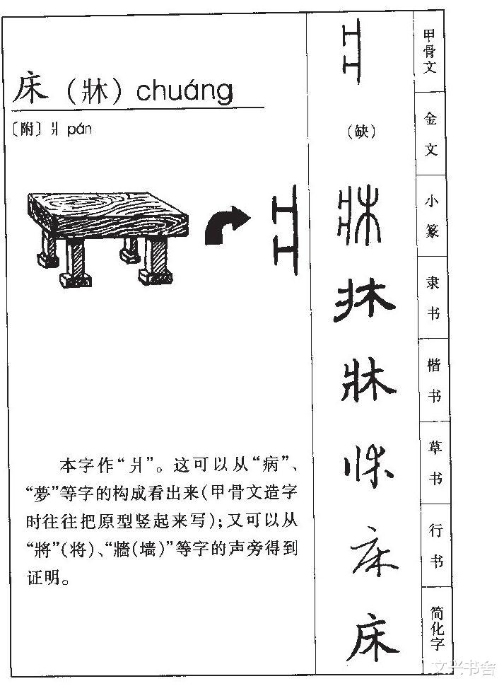 病字旁 疒(nè),本身就是一个字,它的核心部件是 爿(pán)——爿就是 “床” 的象形初文。