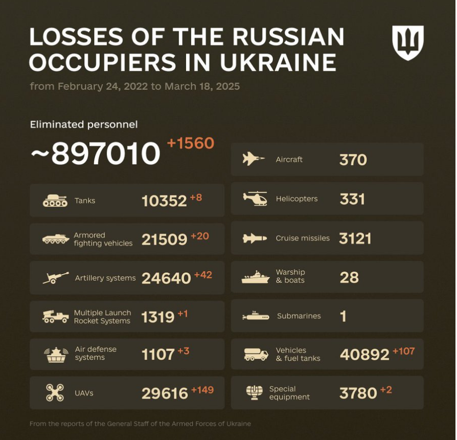 乌总参公布的昨日战果,歼敌(毙+伤)1560人。
