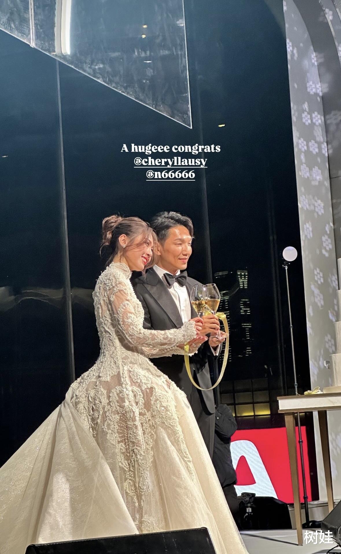 婚礼是正式场合,为了尊重场合,霍启仁与未婚妻打扮正式。其中霍启仁穿了黑色礼服,白色衬衣,不过没有扎领带,所以正式得来又不会显得过于严肃与老套。霍启仁这段时间的状态不错,比起之前的圆润瘦了很多,应该有很努力地在瘦身,脸型线条很明显地显现了出来。坦白说,瘦了之后的他,颜值还是很高的,鼻梁高挺,浓眉大眼,在合照中他拿着酒杯,对着镜头露出浅浅微笑,帅气得很。