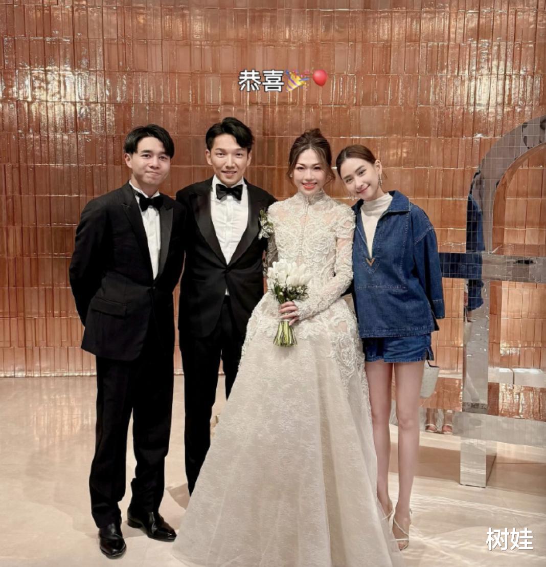 刘湘瑶及其丈夫与城中名媛、富二代私交甚笃,也就是说大家都是一个朋友圈,所以霍家三少及其未婚妻是座上宾,另外何鸿燊三房、四房的子女也受邀出席。罕见的何超莲与何猷亨同框,印象中两人的交集几乎很少,只会在家族聚会中碰头,没想到两人有共同的朋友。合照中,何猷亨穿了礼服,扎了领结现身,四六分的发型倒是显得精神,她站在了新郎旁边。而在新娘旁边的是何超莲,她的打扮没有那么隆重、正式,穿了牛仔短裤与外套现身,看起来她与新娘比较熟络。而到场的富二代、富三代还有马桂烽、马天佑等等。