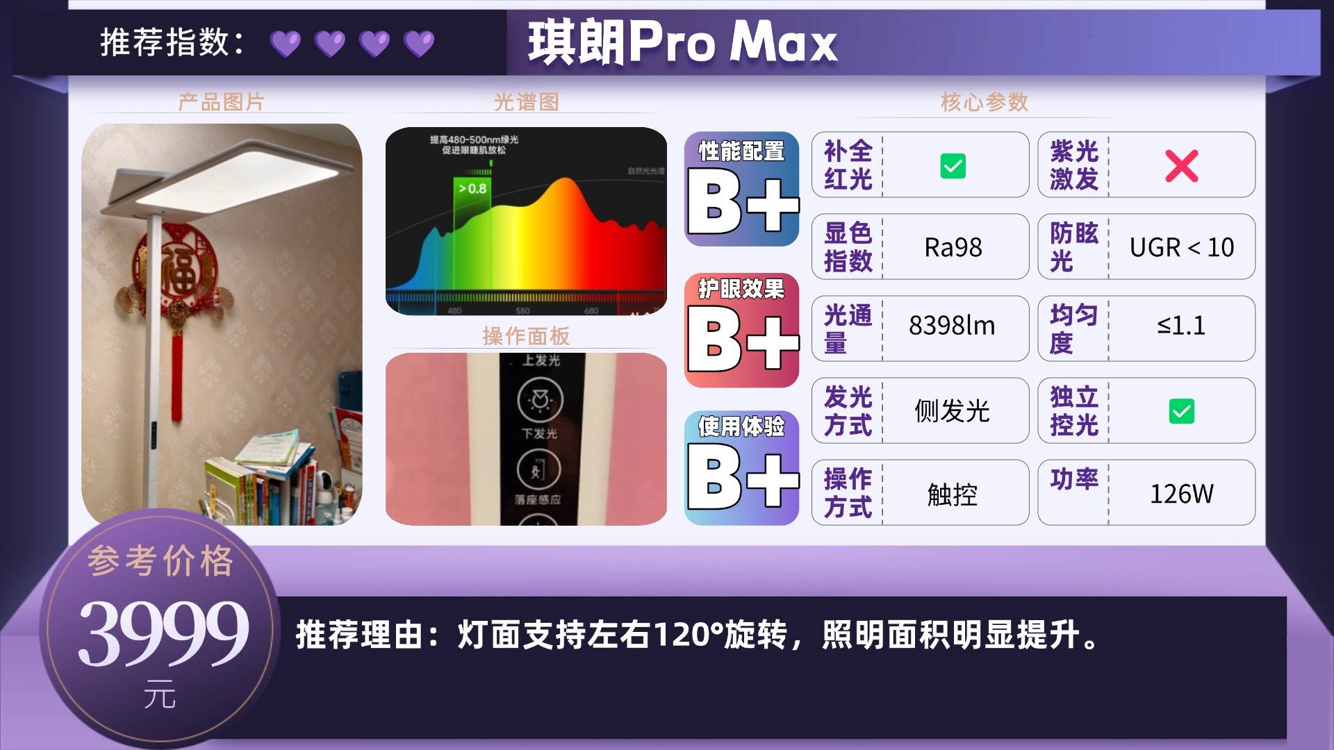 推荐款:琪朗Pro Max——灯面支持左右120°旋转,照明面积明显提升