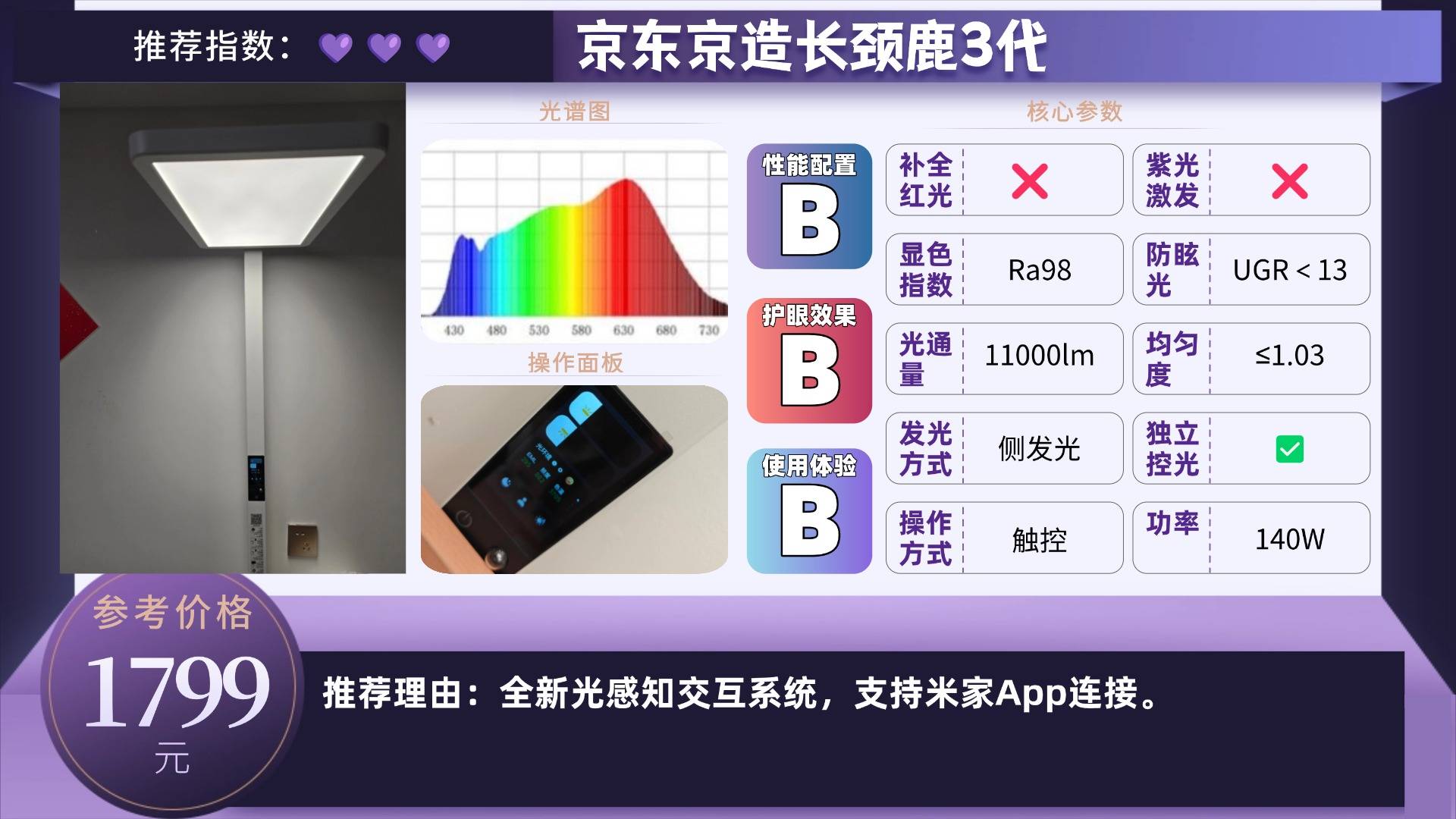 推荐款:京东京造长颈鹿3代——全新光感知交互系统,支持米家App连接。
