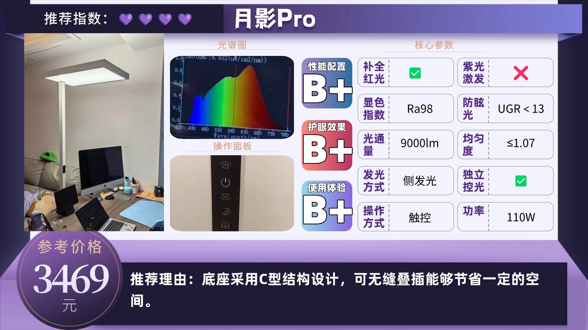 推荐款:月影Pro——底座采用C型结构设计,可无缝叠插能够节省一定的空间。