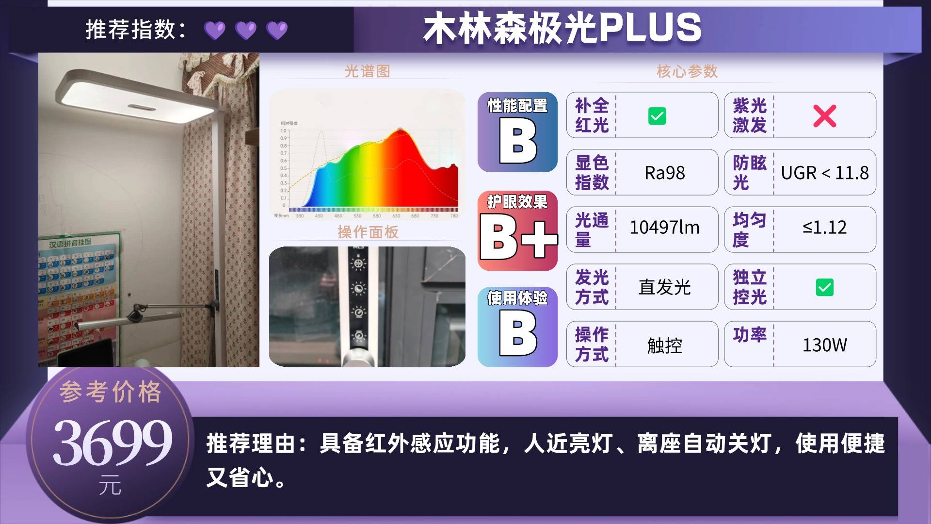 推荐款:木林森极光PLUS——具备红外感应功能,人近亮灯、离座自动关灯,使用便捷又省心。