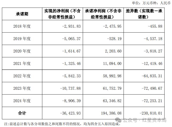 根据中兴财光华会计师事务所出具的审核报告,截至2024年末,宁波天弘业绩承诺期届满,累计净利润为-3.64亿元,未达到承诺目标。实际实现净利润与承诺实现的净利润差额超过23亿元。